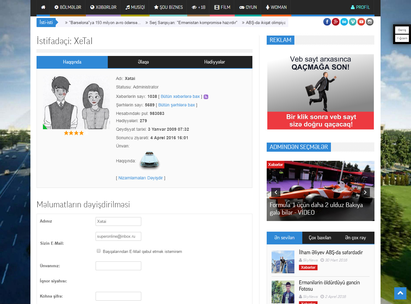 Eləcə də saytda şəxsi ismarıc funksiyası ilə istifadəçilər istər admin heyyəti ilə, istərsə də öz aralarında əlaqə saxlaya bilirlər.