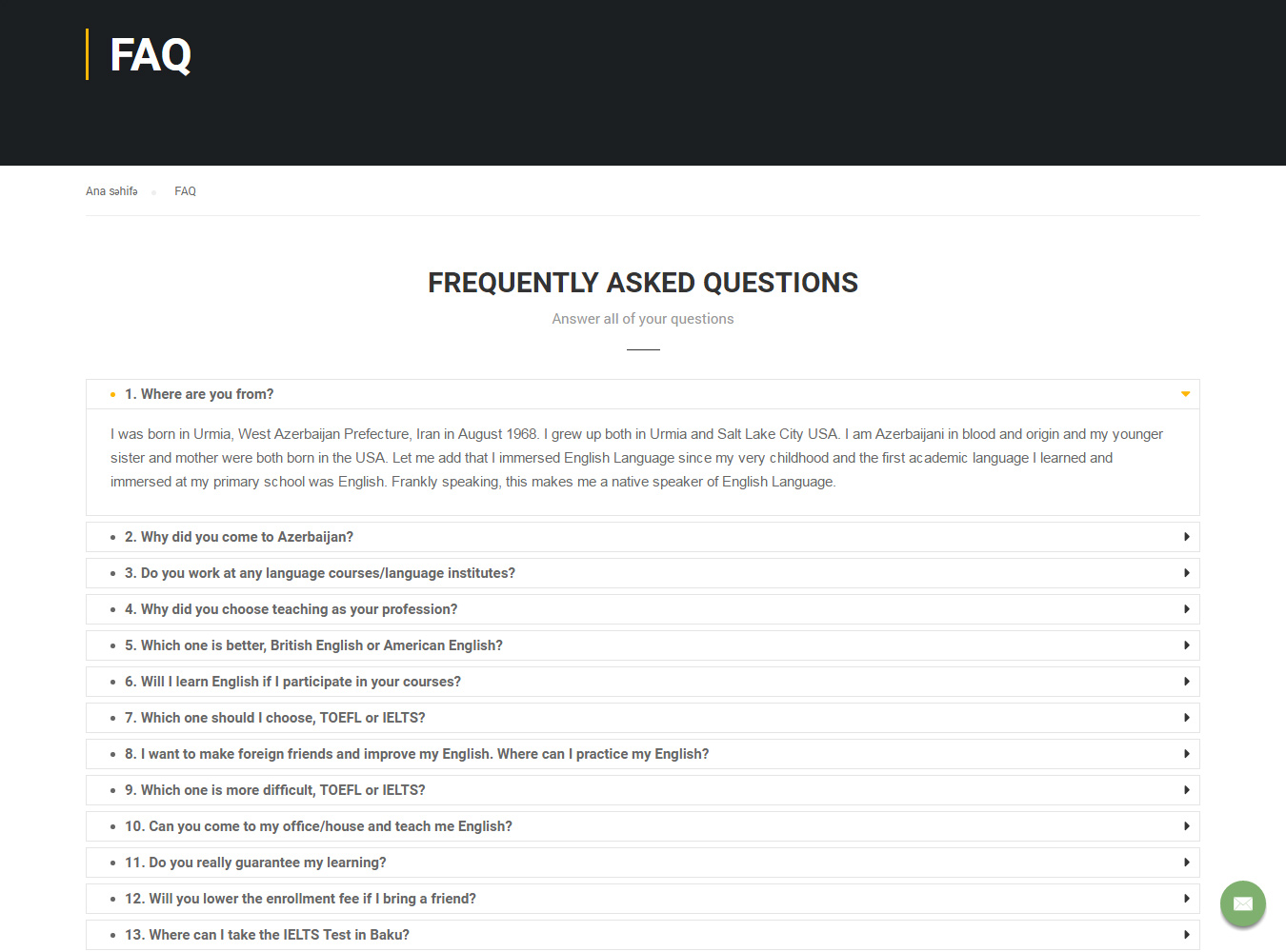 "Tez-tez soruşulan suallar" (FAQ) bölməsində isə bir çox suallara asanlıqla cavab tapmaq olar.