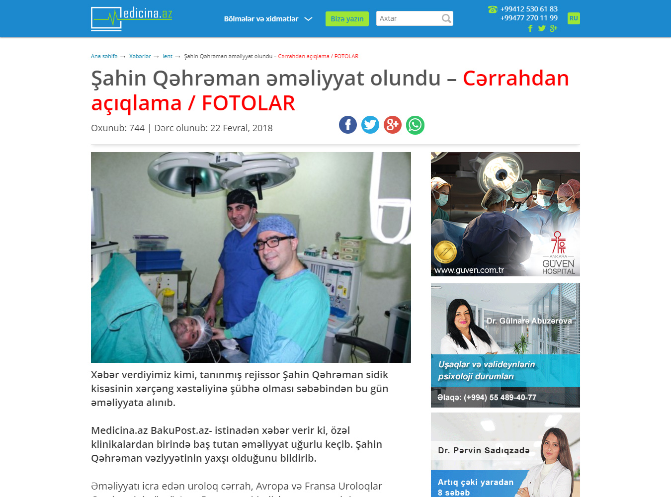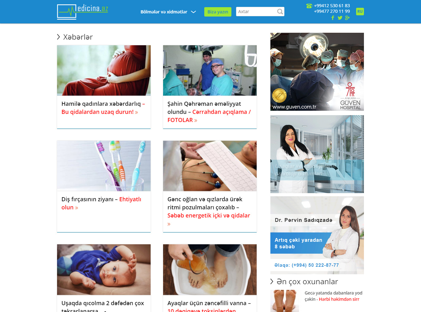 Peşəkar komandanın idarə etdiyi innovativ tibb portalı Medicina.az sağlamlıq və tibbə aid ən son xəbərləri, məlumatları və s. sizə çatdıracaq.