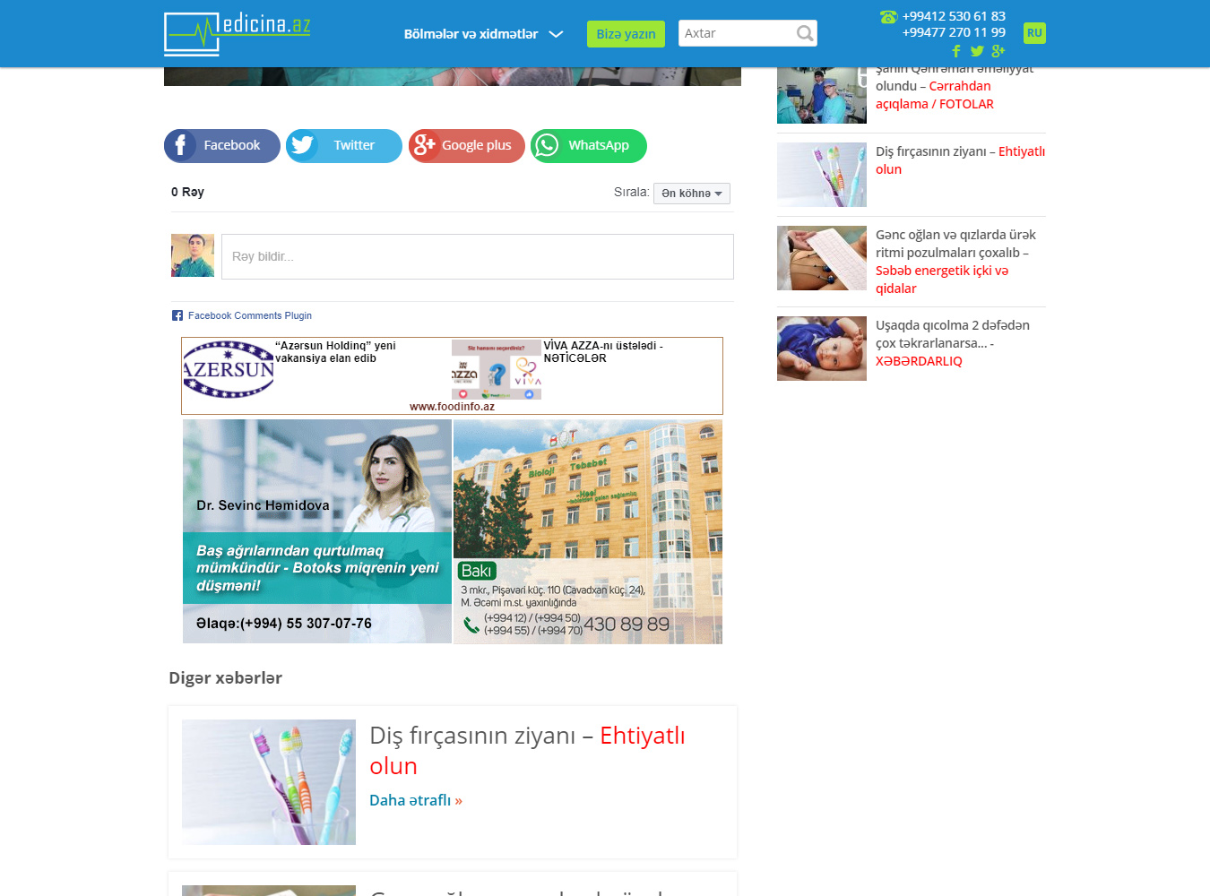 Əziz həkimlər, özünüzü asan yolla milyonlarla izləyicinin olduğu auditoriyaya tanıtdırmaq istəyirsinizsə, Medicina.az-la əməkdaşlığa tələsin. Saytda şirkətiniz barədə, tibbi məhsul və xidmətlər haqqında məlumat, reklam xarakterli mətnlər yerləşdirə bilərsiniz.