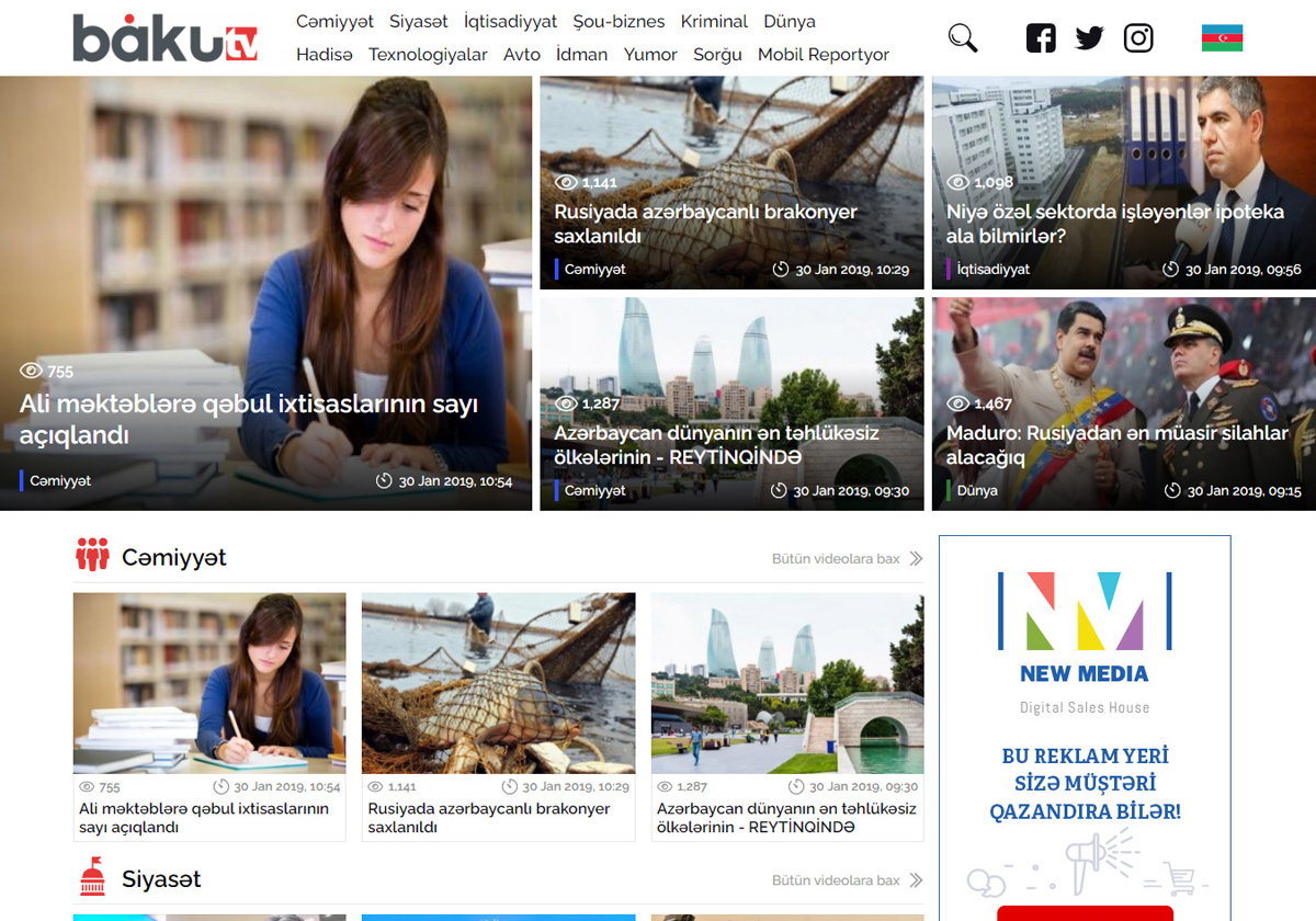 Baku.tv ölkədə və dünyada baş verən ən aktual və maraqlı hadisələr barədə operativ videosujetlər hazırlayaraq auditoriyaya təqdim edir.