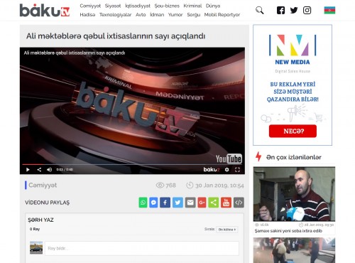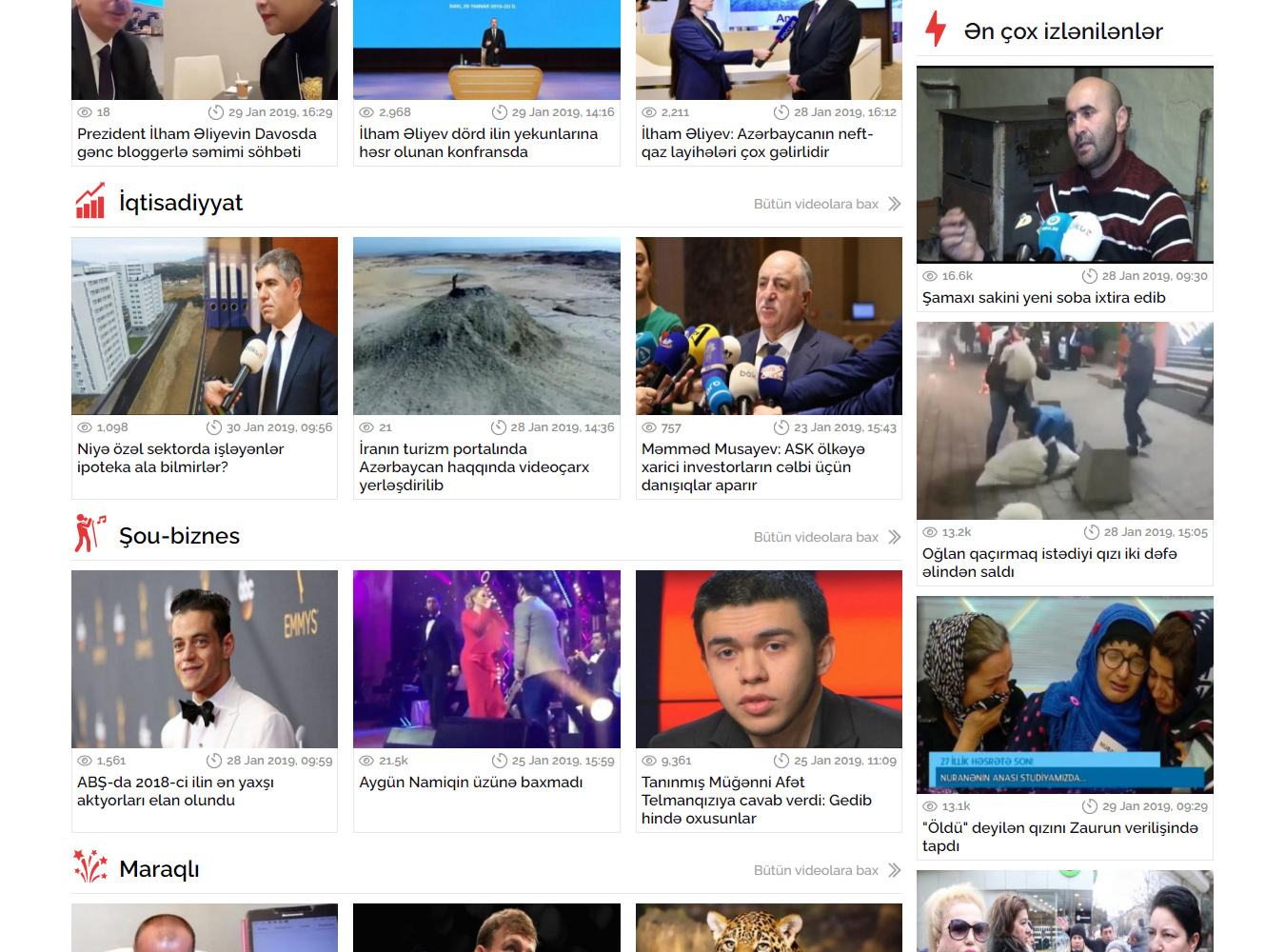 Sağ blokda isə ən çox izlənilən videolar göstərilir. Video xəbərə daxil olduqda isə videonu dərhal izləmək, paylaşmaq, rəy yazmaq, əvvəlki və növbəti videolara dərhal keçid mümkündür.