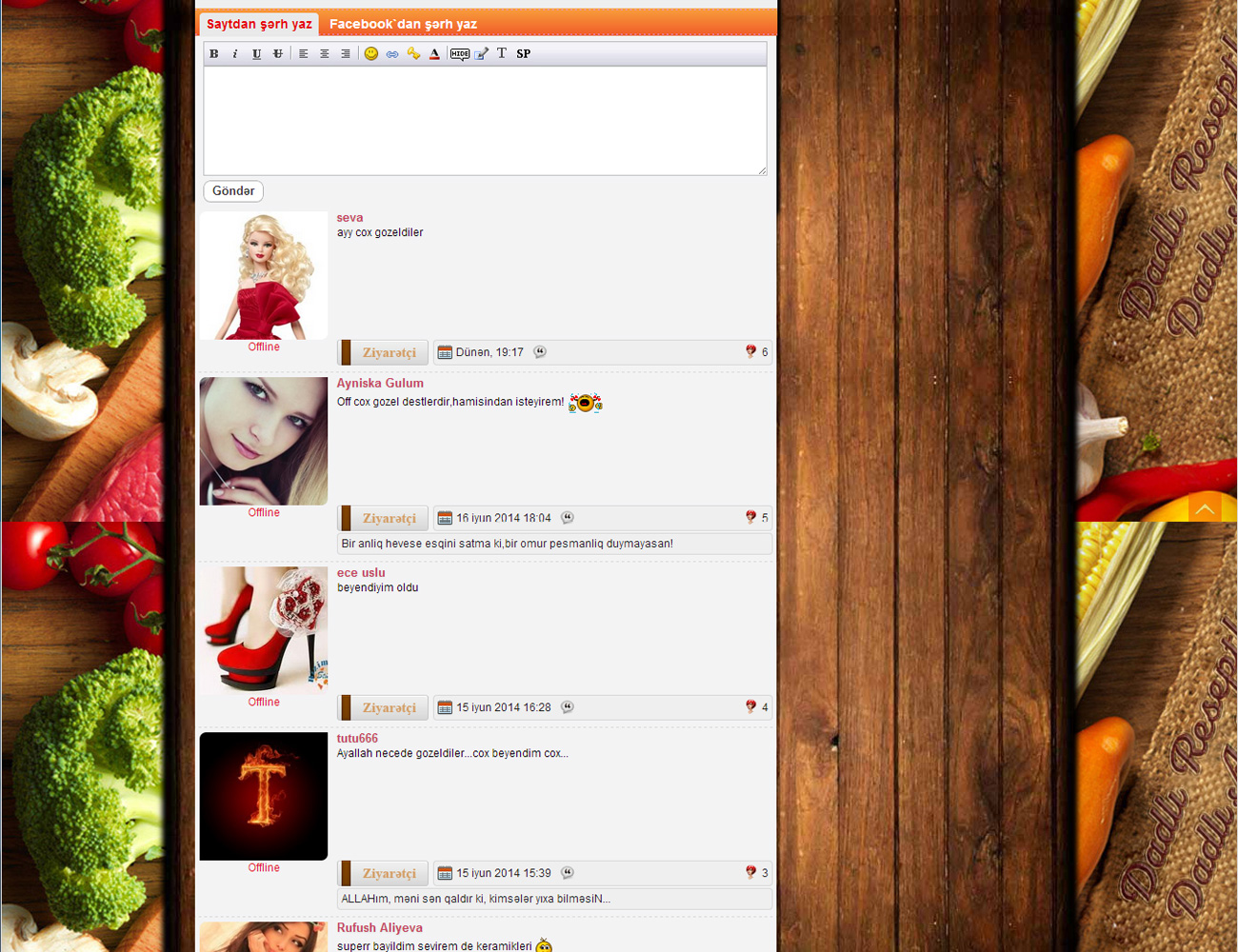 Nəinki şəkilli, yazılı reseptlər, hətta video reseptlər də mövcuddur. Azərbaycan mətbəxi ilə yanaşı, türk, rus, avropa və digər mətbəxə aid olan reseptlər kifayət qədər çoxdur.
