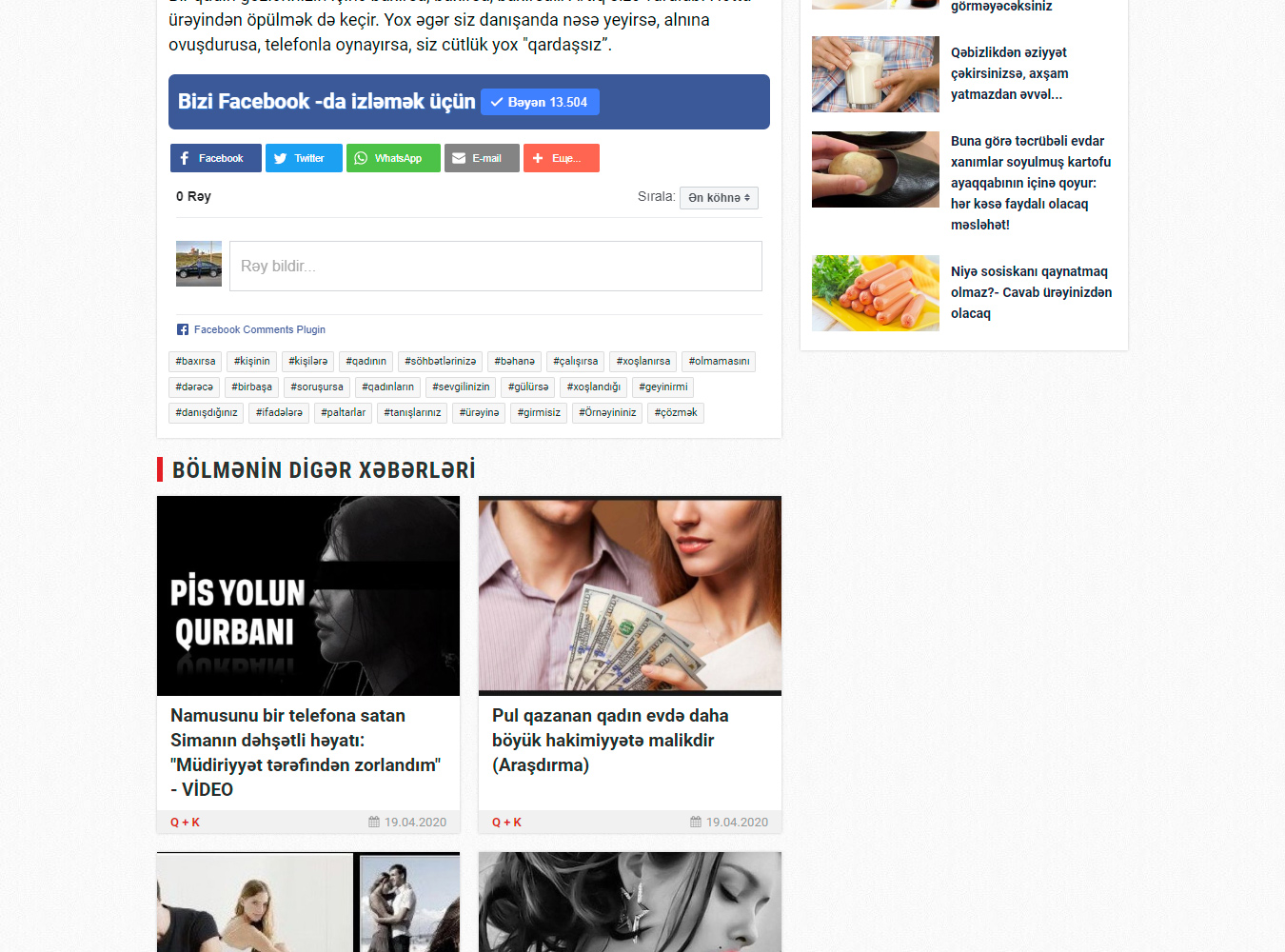 Xəbərlərə daxil olduqda isə sağ blokda ən çox oxunan xəbərləri və yeni xəbərləri, aşağı hissədə isə bölmənin digər xəbərlərini oxumaq mümkündür.