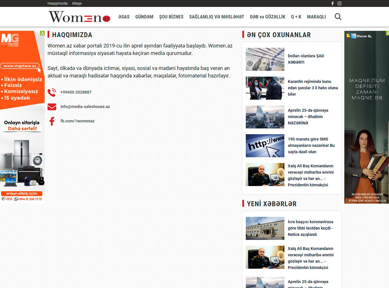 Müstəqil informasiya siyasəti həyata keçirən media qurum women.az qısa zamanda oxucuların rəğbətini qazanmış, böyük marağa səbəb olmuşdur.