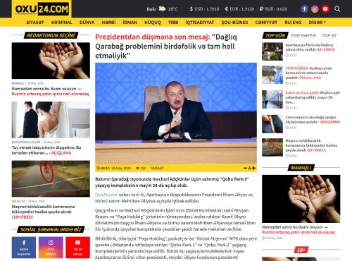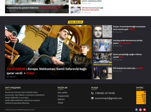 Azərbaycanın ən oxunaqlı, məşhur, stabil artım nümayiş etdirən xəbər resurslarından biri olan Oxu24.com bir çox bölmələr üzrə xəbərləri təqdim edir. Veb-saytda həmçinin hava haqqında və günün valyutası ilə də tanış olmaq olar.