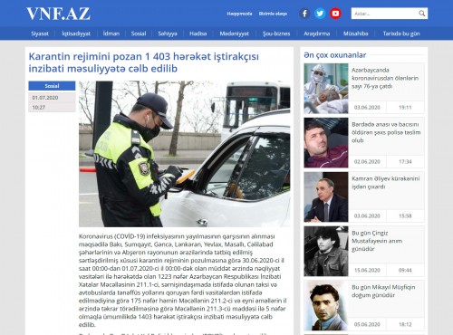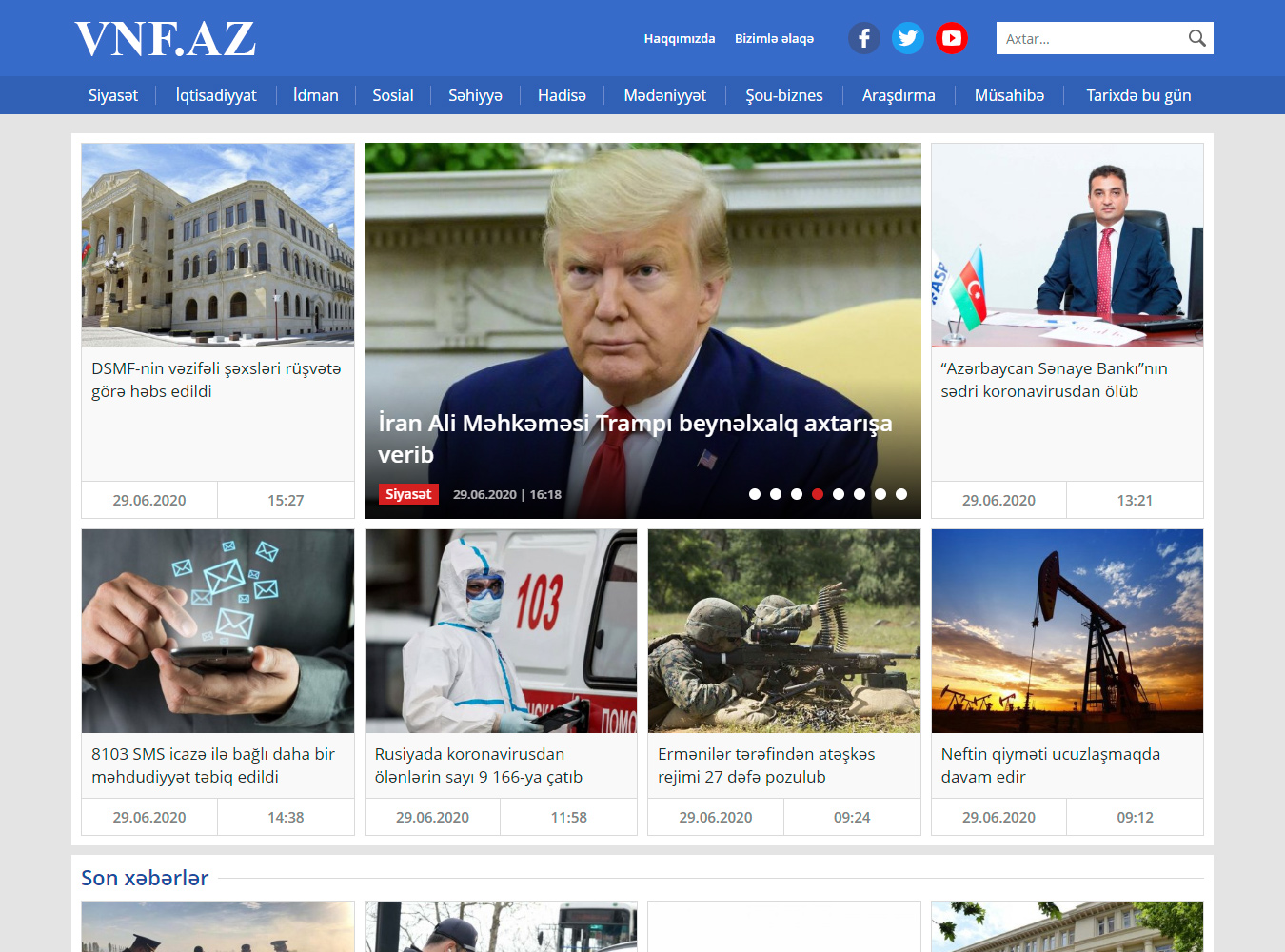 Daha sonra isə hər bölməyə aid ən son 4 xəbər sıralanır. Xəbərə daxil olduqda isə əlavə olaraq bölmənin digər xəbərlərini, sağ blokda isə ən çox oxunan xəbərləri görmək mümkündür.