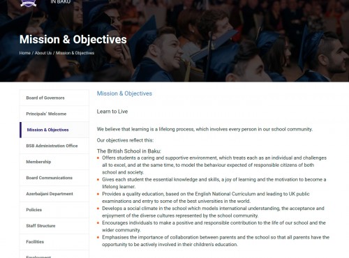 İngilis məktəbinə xoş gəlmisiniz! Bakıdakı Britaniya Məktəbi COBIS (Beynəlxalq Britaniya Məktəblər Şurası) və CİS (Beynəlxalq Məktəblər Şurası) üzvüdür. Eləcə də QCA (İxtisasartırma və Kurikulum Təşkilatı), Cambridge International Examinations (Cambridge Beynəlxalq İmtahanları) və Edexcel tərəfindən akkreditə edilmişdir. Bu, tələbələrimizə İngiltərədən gələn imtahanlarda iştirak etmək imkanı verir.
