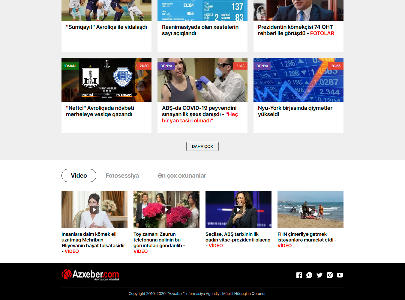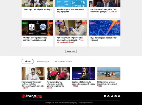 Ana səhifədə ən aşağıya isə fotosessiya, video və ən çox oxunanlar bloku yerləşdirildi.