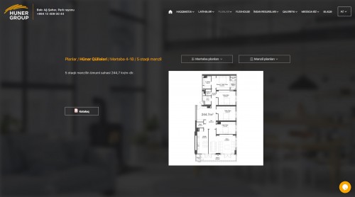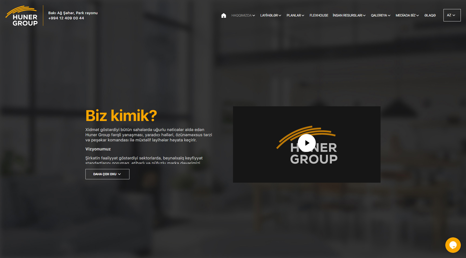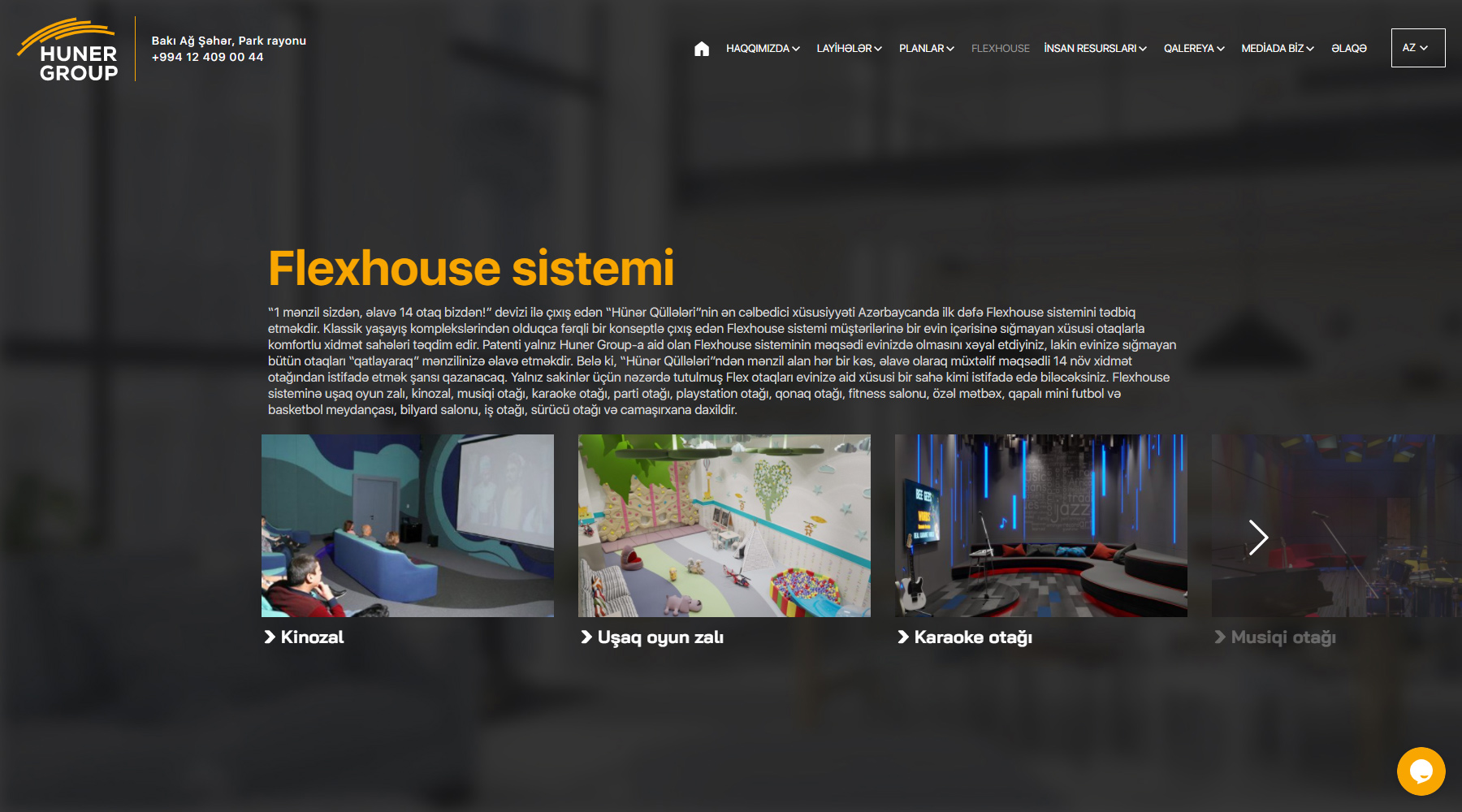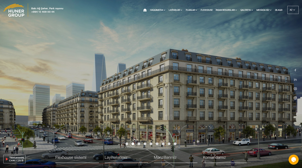 Veb-sayt 3 dildə fəaliyyət göstərir, şirkət haqqında ətraflı məlumat, layihələr, planlar, mənzillər, foto və videolar və s. yerləşdirilmişdir.