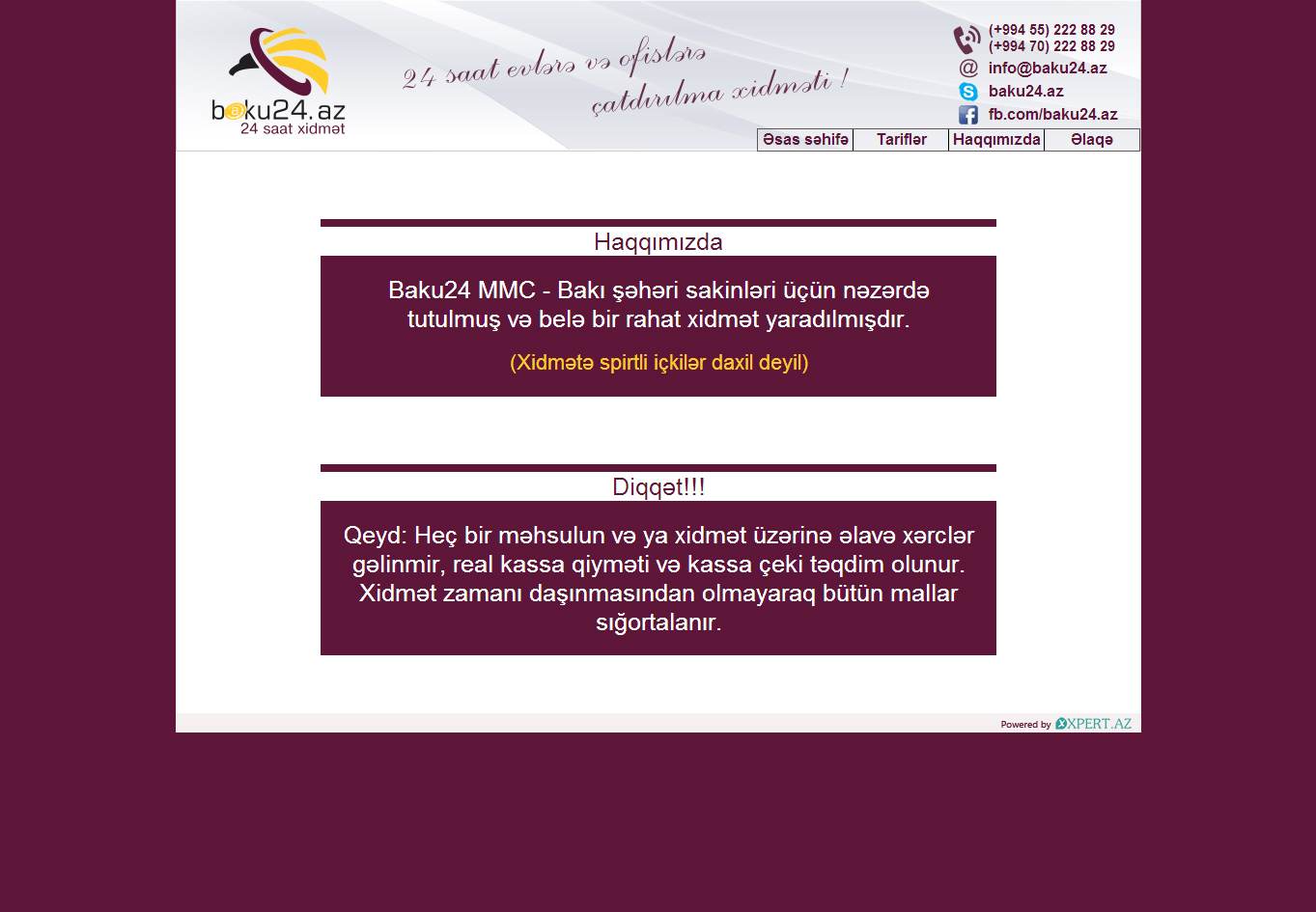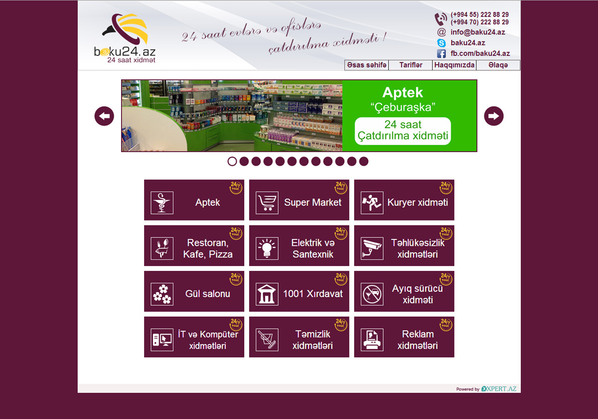 Ən çox tələbat olan xidmətləri 24 saat, fasiləsiz Baku24.az-da əldə edin, həm sürətdən, həm də keyfiyyətdən məmnun qalacaqsınız.