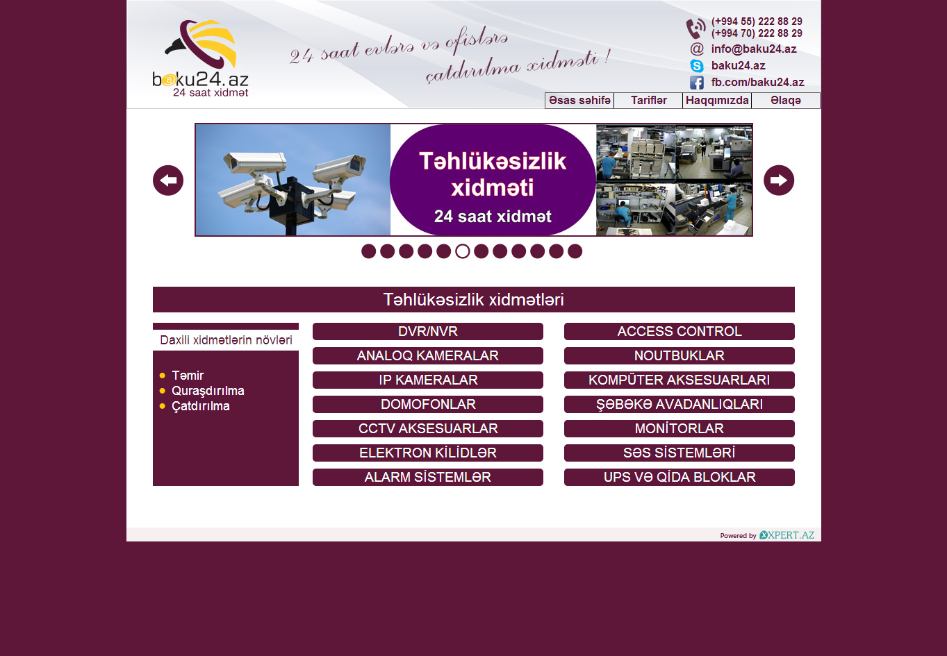 Təhlükəsizlik xidmətləri - təhlükəsizlik kameralarının, domofonların, şəbəkə avadanlıqlarının quraşdırılması, təmiri