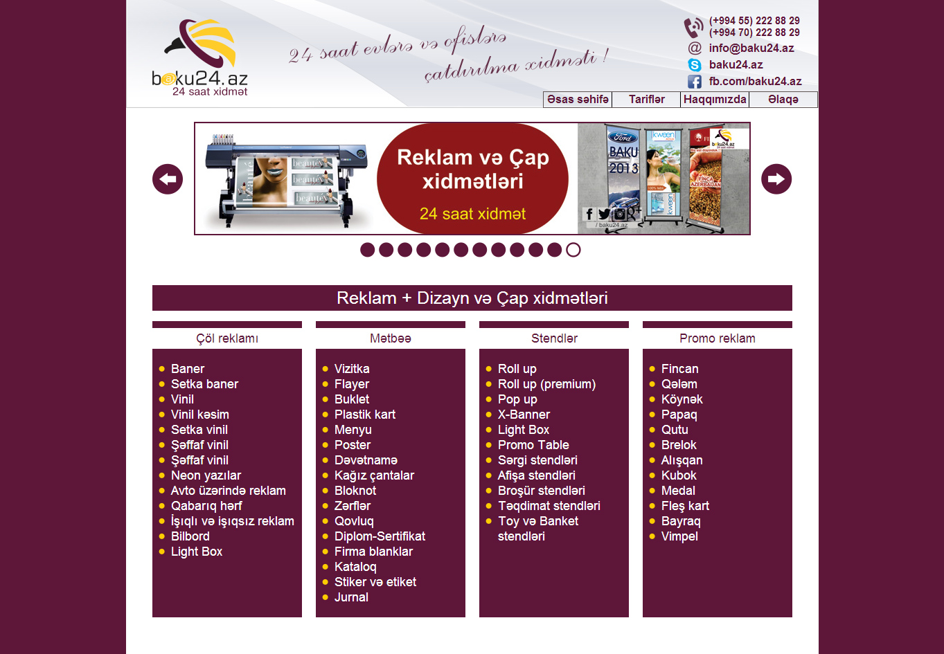 Reklam xidmətləri - Çöl reklamı, mətbəə, stendlər, promo reklam və s.