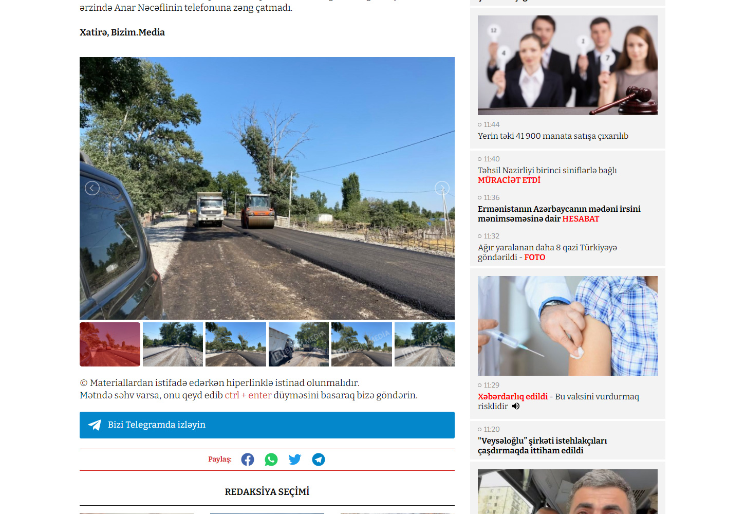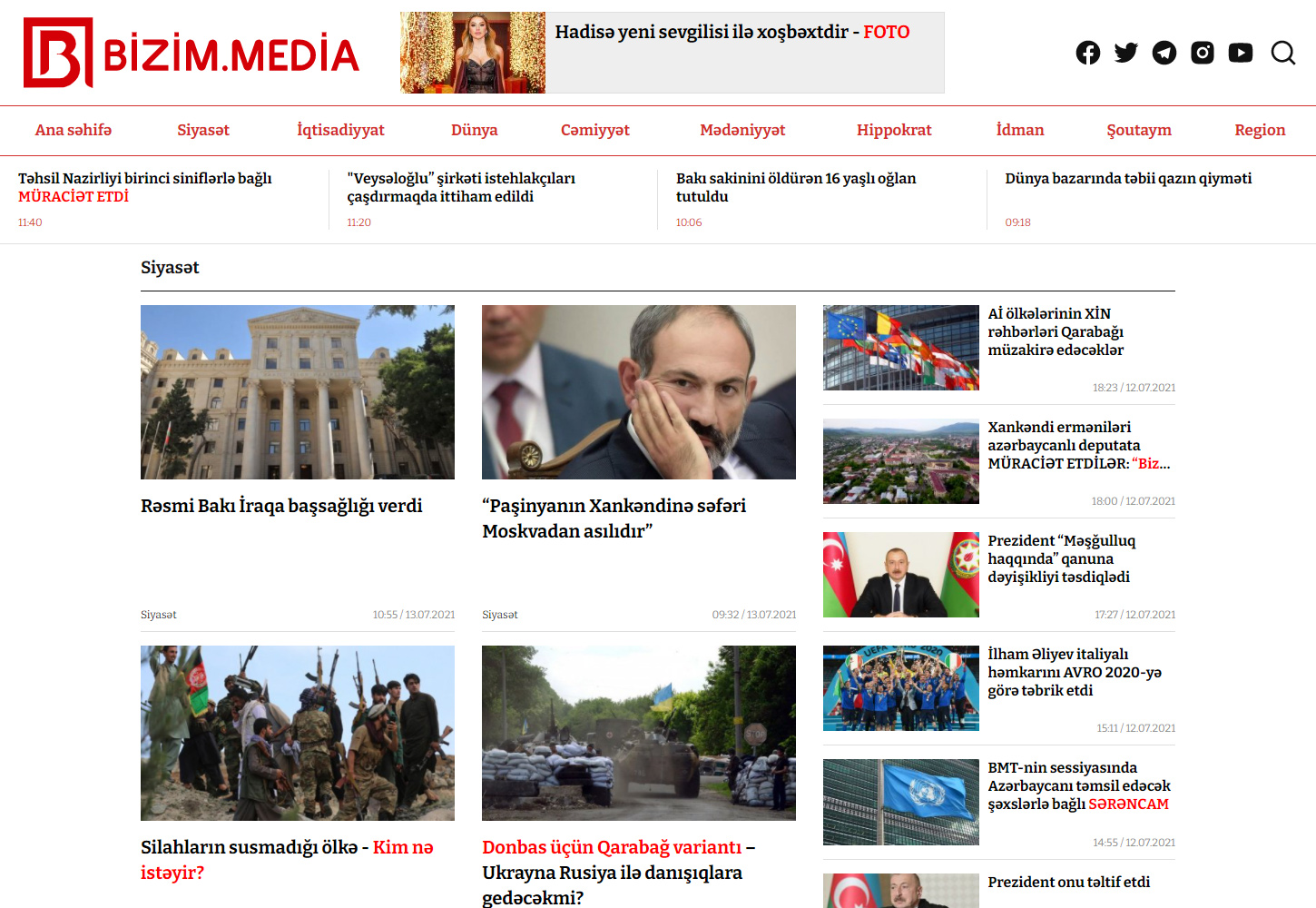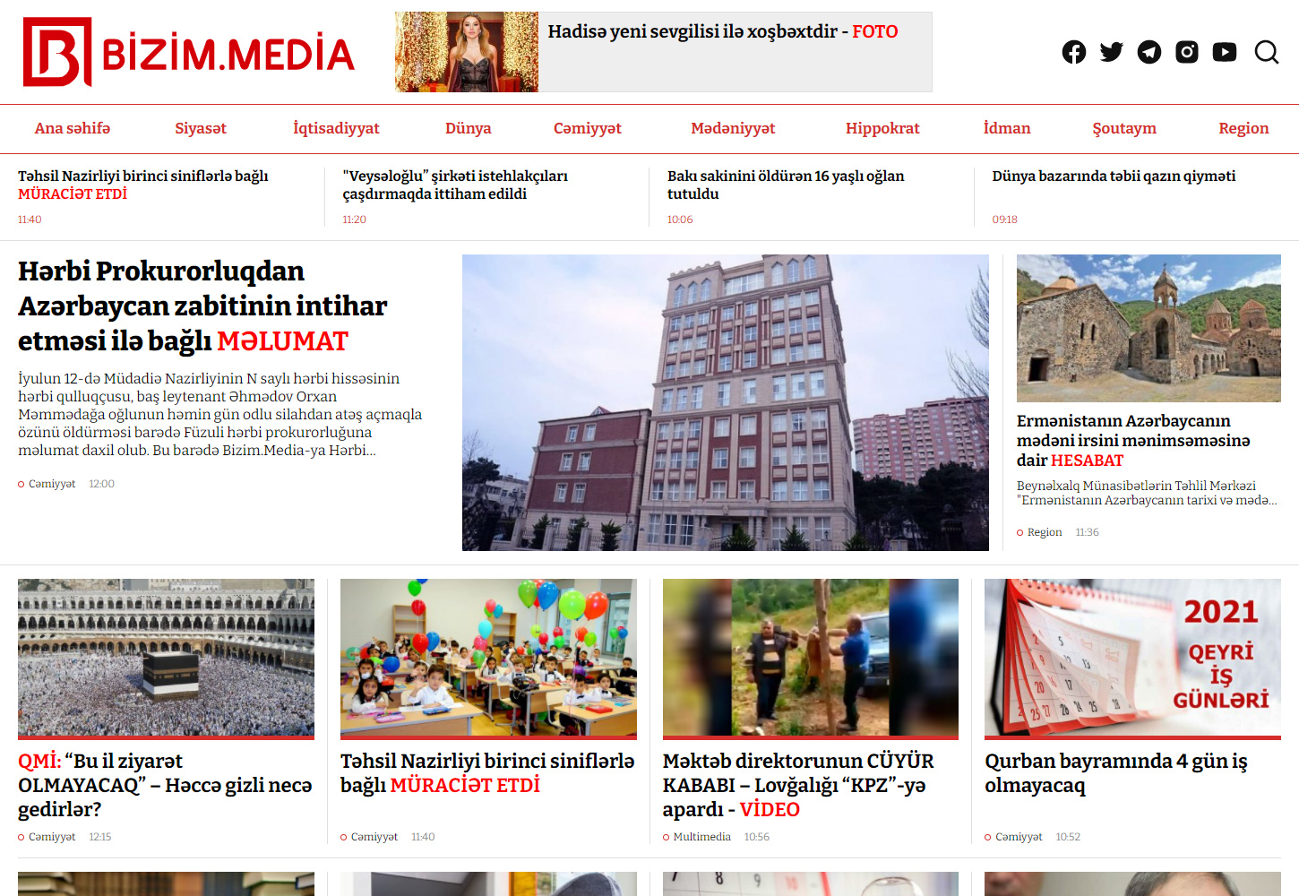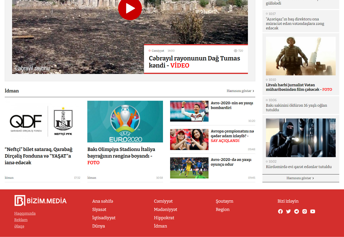 Bizim.media ilə Azərbaycanın ictimai, siyasi, sosial və mədəni həyatında olan yeniliklərlə bərabər, dünyada baş verən maraqlı hadisələri izləyə və xəbərdar ola bilərsiniz.