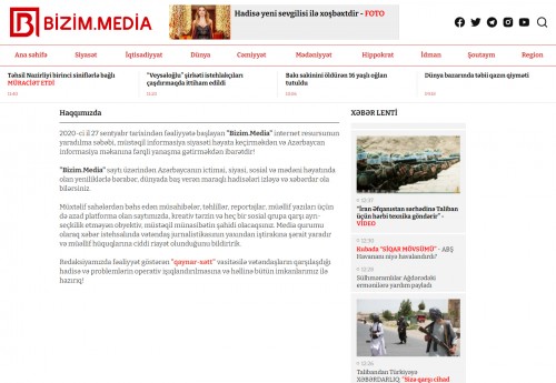 2020-ci il 27 sentyabr tarixindən fəaliyyətə başlayan "Bizim.Media" internet resursunun yaradılma səbəbi, müstəqil informasiya siyasəti həyata keçirməkdən və Azərbaycan informasiya məkanına fərqli yanaşma gətirməkdən ibarətdir!