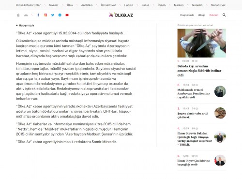 "Ölkə.Az" xəbər agentliyinin məsul redaktoru Samir Mirzədir.
