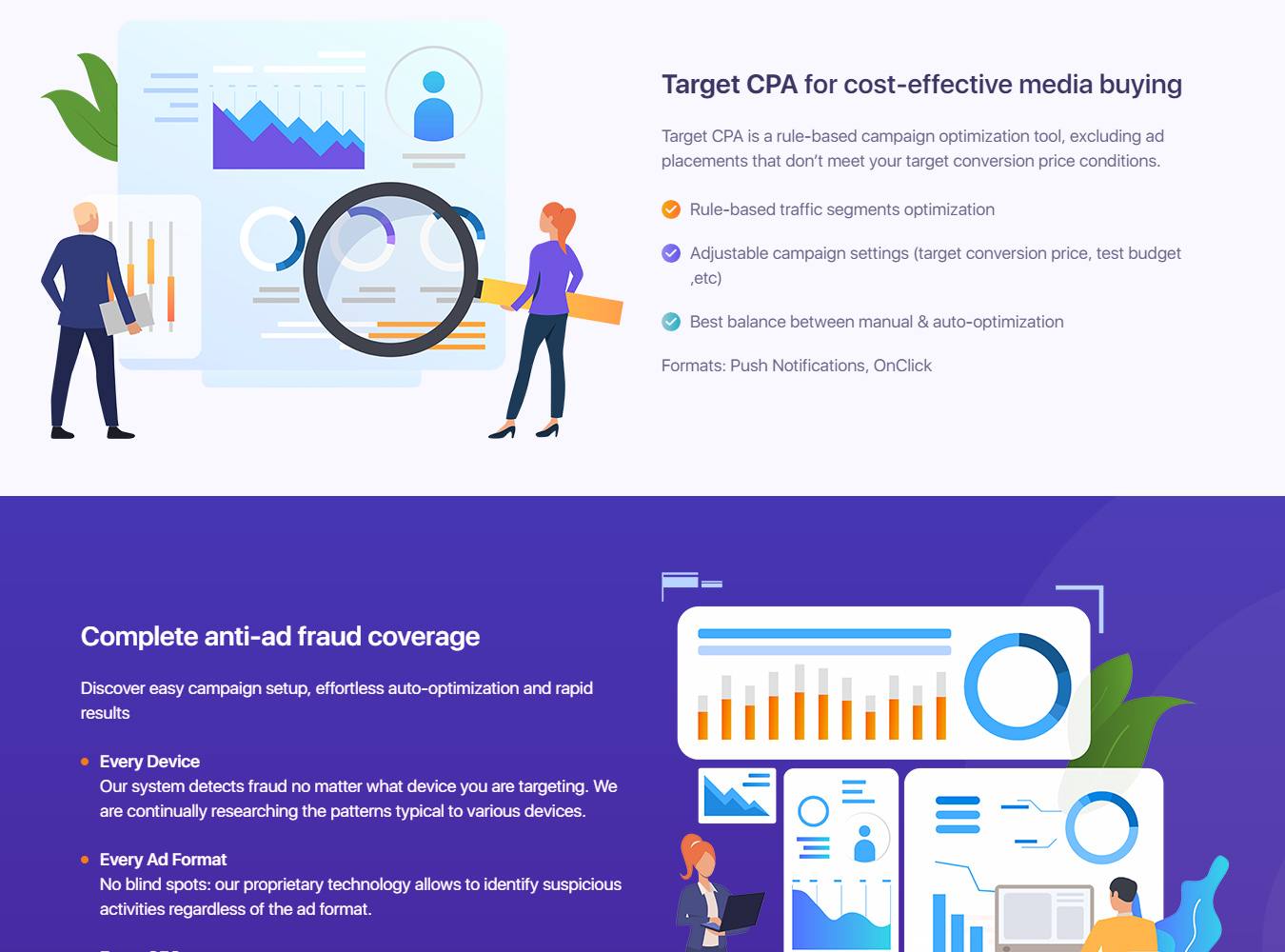 Büdcəniz aşağı düşmür, çünki fırıldaqçılıqdan qorunma ilə pul ciddi şəkildə hədəfinizə əsasən ayrılır. Reklamlarınızı yalnız real insanlar görəcək.