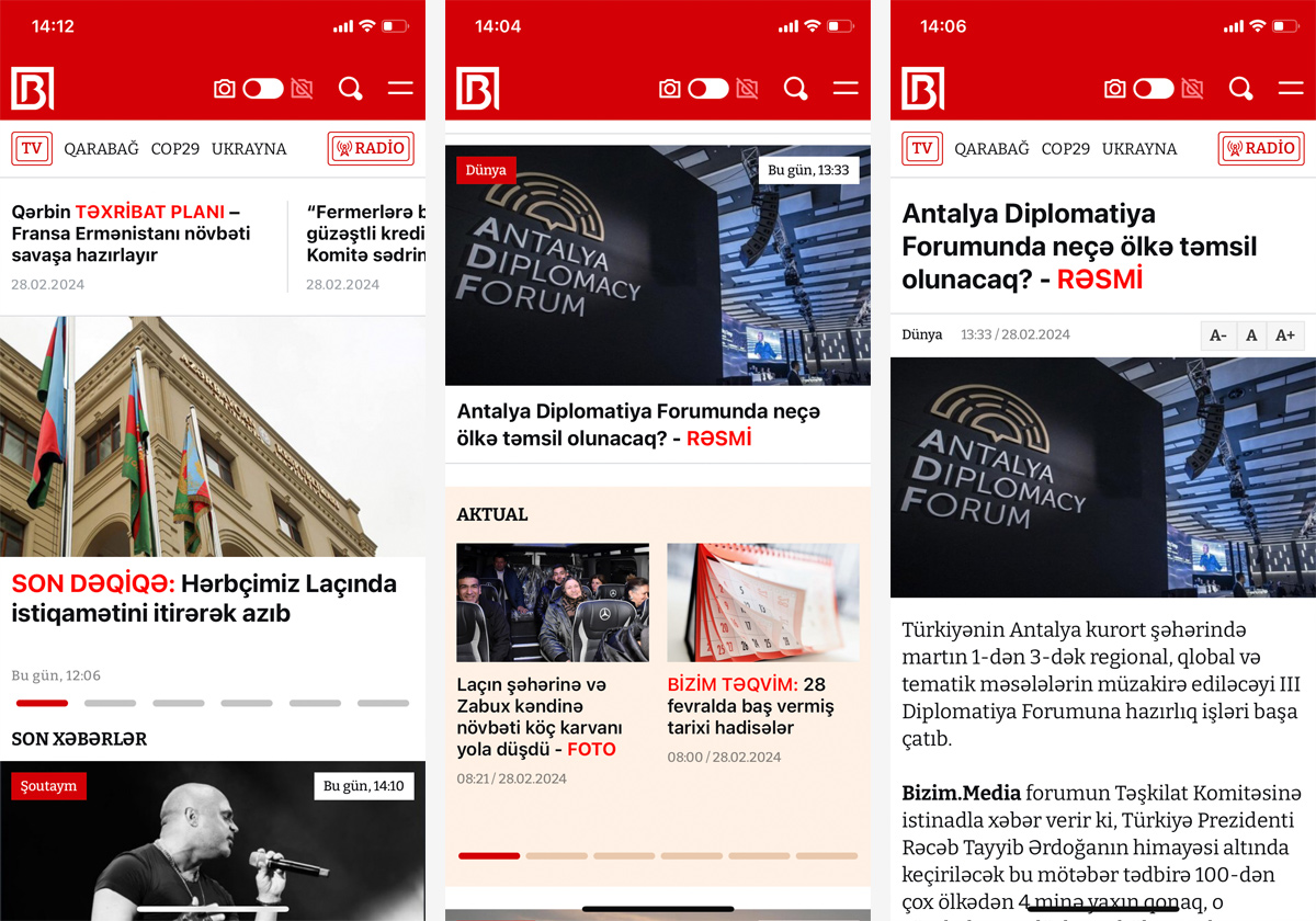 Bizim.media ilə Azərbaycanın ictimai, siyasi, sosial və mədəni həyatında olan yeniliklərlə bərabər, dünyada baş verən maraqlı hadisələri izləyə və xəbərdar ola bilərsiniz.